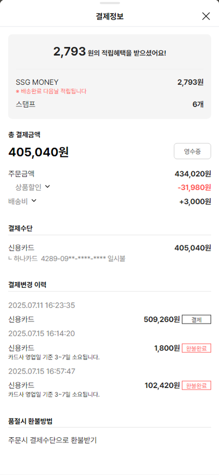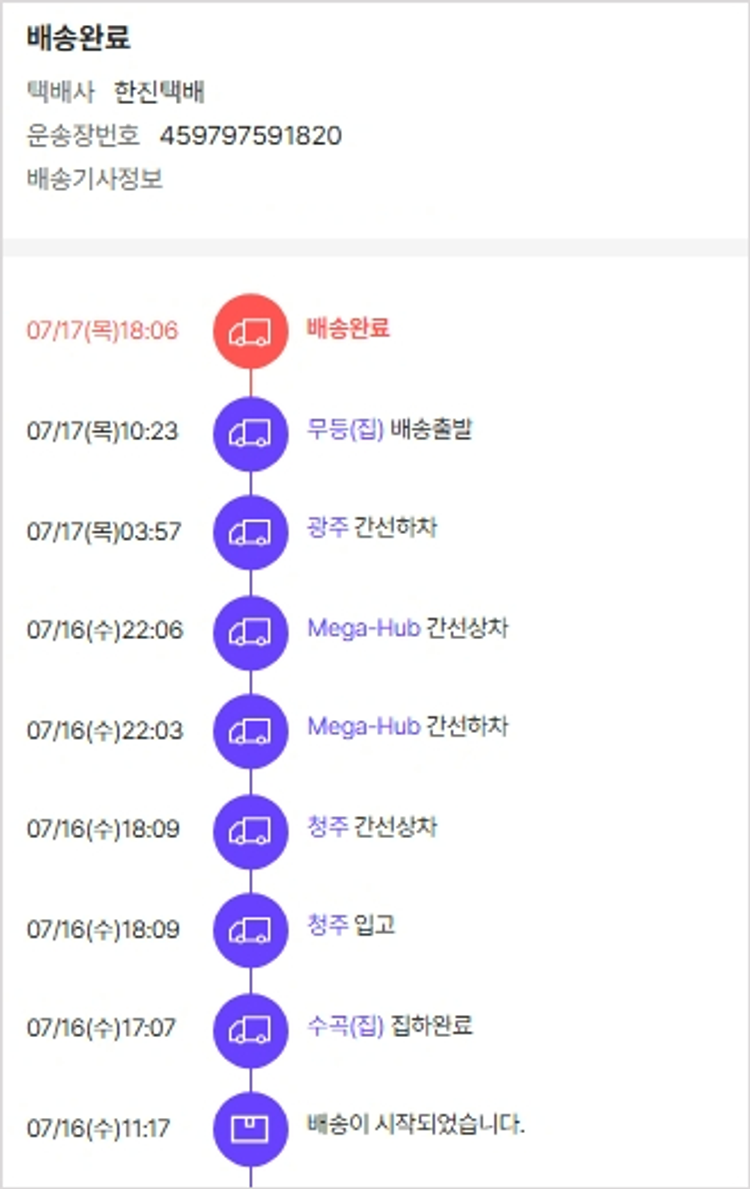 기부자님이 사용한 기부포인트 11,100원, 물품배송비 3,000원, 가격상승분 14,508원, 100원 미만 지원금 32원, 결제 수수료 14,404원, 기타 사업비는 행복나눔재단이 부담했습니다. (기부후기 발송시점에 최종 업데이트 됩니다.) 상품 주문 건 중 품절 발생하여 2025-07-16 재주문하였습니다. 실제 쇼핑몰에서 확인되는 배송현황을 캡처한 내용입니다. 실시간 자료와는 차이가 있을 수 있습니다.