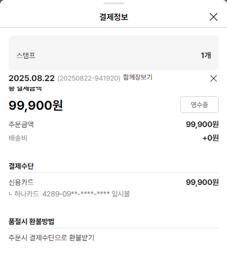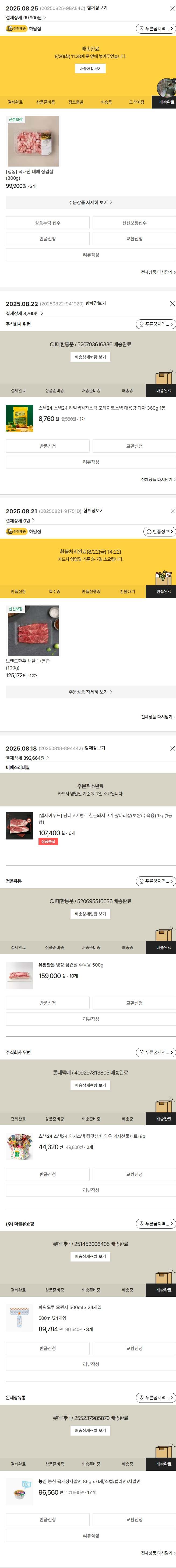 고기 중량 환불로 인해 2025-08-22 식품류 추가 주문되었습니다.
