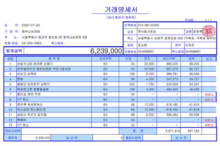 * 배송비 등 추가비용 발생시 행복나눔재단 이 부담합니다.