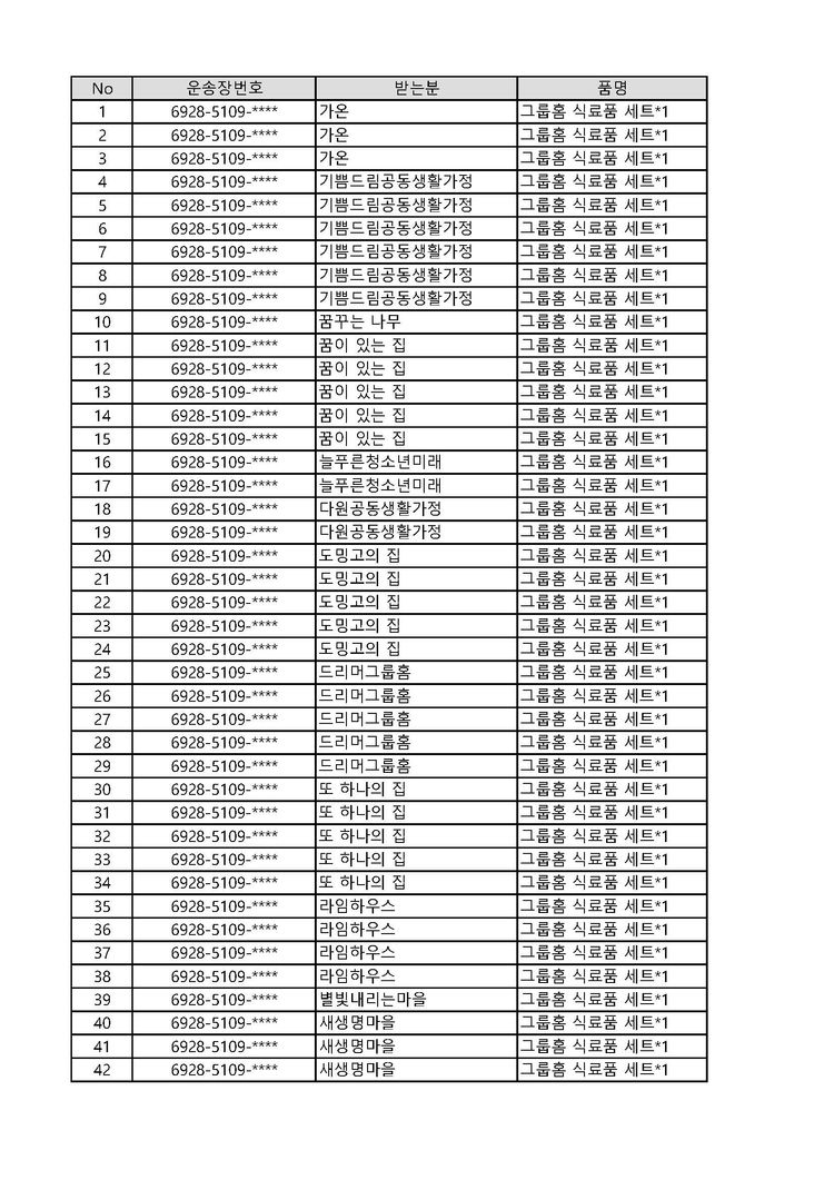 가온 이초록(가명) says: 물품을 기부해주신 NCT 도영님께 진심으로 감사드립니다. 아이들에게 꼭 필요한 생활용품과 간식 등을 직접 구입해주셔서 우리 가온 식구들이 매우 기뻐하며 감사한 마음을 전합니다. 도영님의 따뜻한 마음이 진심으로 느껴지고 기쁨과 응원이 되었고, 나눔의 소중함을 함께 느낄 수 있는 소중한 시간이었습니다. 보내주신 물품은 생활 속에서 유용하게 사용하겠습니다. 관심과 배려 다시 한번 감사드립니다.