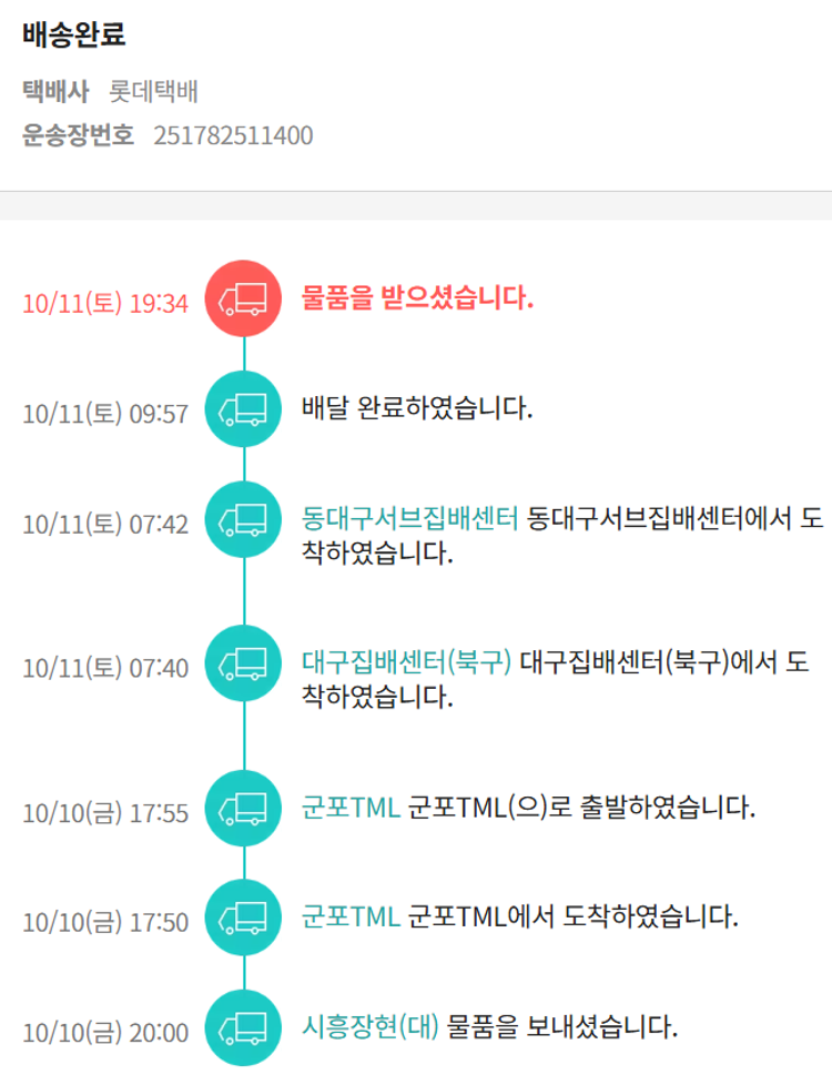기부자님이 사용한 기부포인트 7,100원, 물품배송비 3,500원, 가격상승분 8,248원, 100원 미만 지원금 80원, 결제 수수료 12,274원, 기타 사업비는 행복나눔재단이 부담했습니다. (기부후기 발송시점에 최종 업데이트 됩니다.) 실제 쇼핑몰에서 확인되는 배송현황을 캡처한 내용입니다. 실시간 자료와는 차이가 있을 수 있습니다.