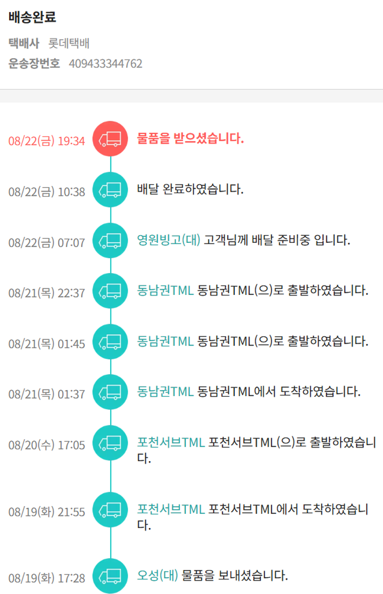 기부자님이 사용한 기부포인트 18,500원, 물품배송비 3,000원, 가격상승분 5,090원, 100원 미만 지원금 15원, 결제 수수료 10,940원, 기타 사업비는 행복나눔재단이 부담했습니다. (기부후기 발송시점에 최종 업데이트 됩니다.) 실제 쇼핑몰에서 확인되는 배송현황을 캡처한 내용입니다. 실시간 자료와는 차이가 있을 수 있습니다.
