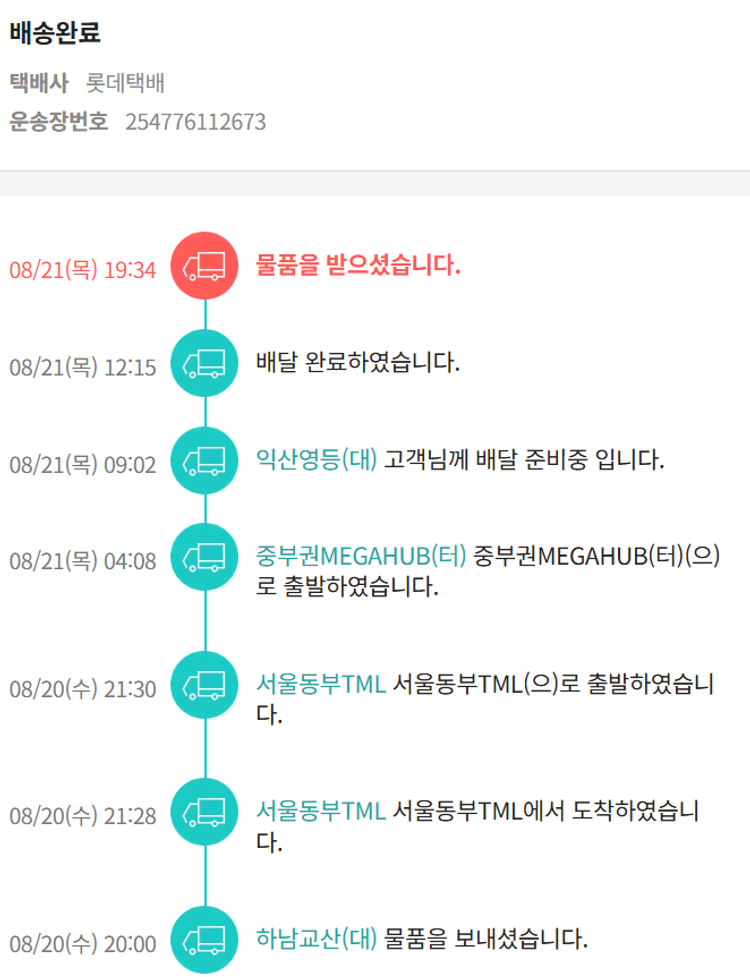 기부자님이 사용한 기부포인트 8,000원, 물품배송비 4,000원, 가격상승분 1,060원, 100원 미만 지원금 30원, 결제 수수료 21,278원, 기타 사업비는 행복나눔재단이 부담했습니다. (기부후기 발송시점에 최종 업데이트 됩니다.) 실제 쇼핑몰에서 확인되는 배송현황을 캡처한 내용입니다. 실시간 자료와는 차이가 있을 수 있습니다.