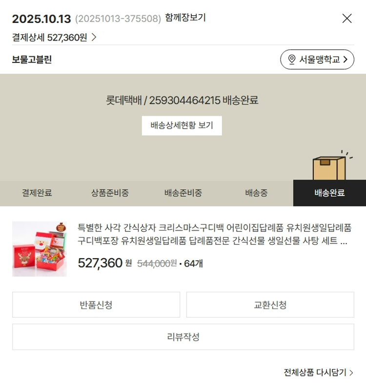 기부자님이 사용한 기부포인트 41,700원, 가격상승분 4,160원, 결제 수수료 11,896원, 기타 사업비는 행복나눔재단이 부담했습니다. (기부후기 발송시점에 최종 업데이트 됩니다.) 실제 쇼핑몰에서 확인되는 배송현황을 캡처한 내용입니다. 실시간 자료와는 차이가 있을 수 있습니다.