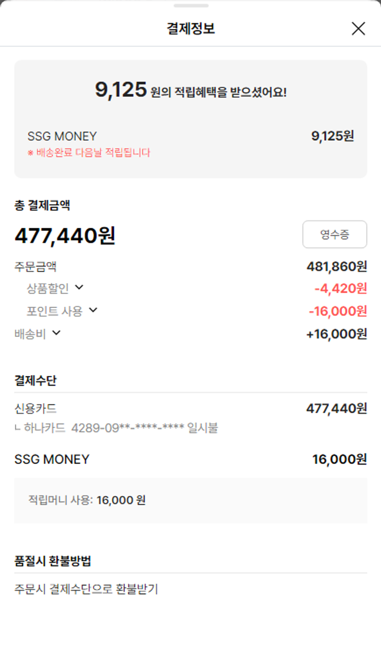 기부자님이 사용한 기부포인트 6,600원, 가격상승분 790원, 100원 미만 지원금 50원, SSG 머니 16,000포인트, 결제 수수료 10,081원, 기타 사업비는 행복나눔재단이 부담했습니다. (기부후기 발송시점에 최종 업데이트 됩니다.) 실제 쇼핑몰에서 확인되는 배송현황을 캡처한 내용입니다. 실시간 자료와는 차이가 있을 수 있습니다.