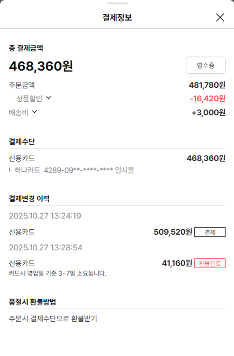 물품배송비 3,000원, 가격상승분 12,350원, 100원 미만 지원금 10원, 기타 사업비는 행복나눔재단이 부담했습니다. (기부후기 발송시점에 최종 업데이트 됩니다.) 상품 주문 건 중 품절 발생하여 2025-10-29 재주문하였습니다. 실제 쇼핑몰에서 확인되는 배송현황을 캡처한 내용입니다. 실시간 자료와는 차이가 있을 수 있습니다.