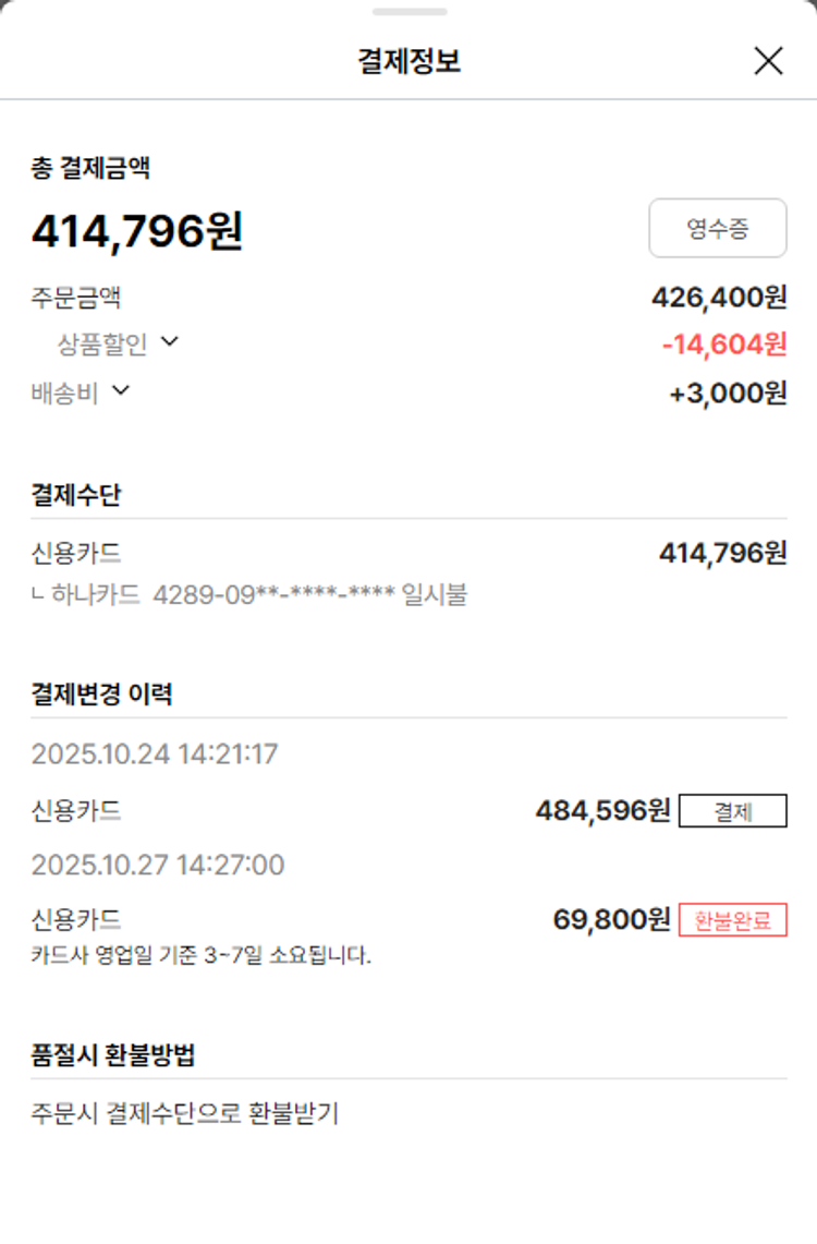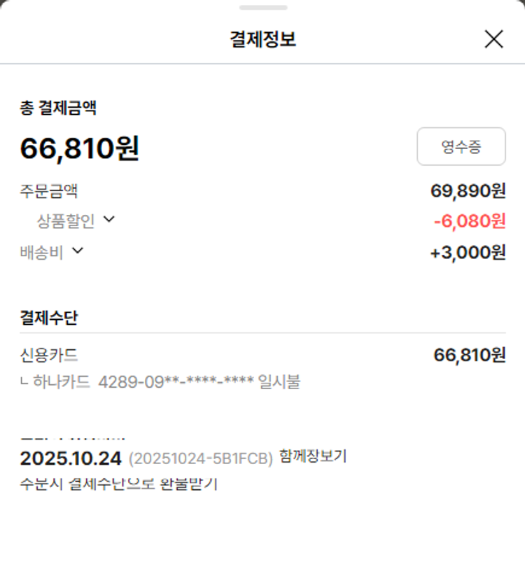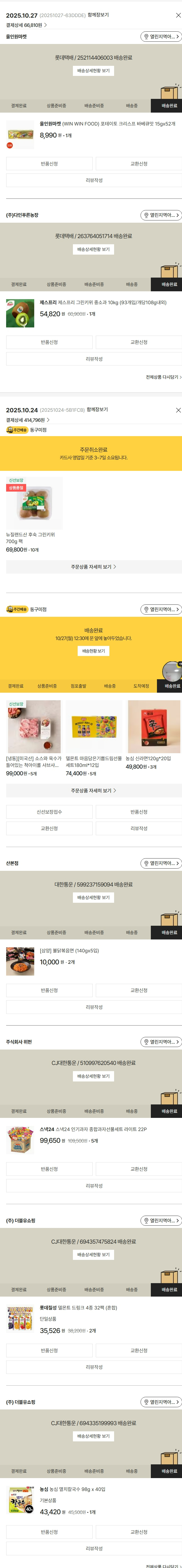 물품배송비 6,000원, 가격상승분 3,430원, 100원 미만 지원금 76원, 기타 사업비는 행복나눔재단이 부담했습니다. (기부후기 발송시점에 최종 업데이트 됩니다.) 상품 주문 건 중 품절 발생하여 2025-10-27 재주문하였습니다. 실제 쇼핑몰에서 확인되는 배송현황을 캡처한 내용입니다. 실시간 자료와는 차이가 있을 수 있습니다.