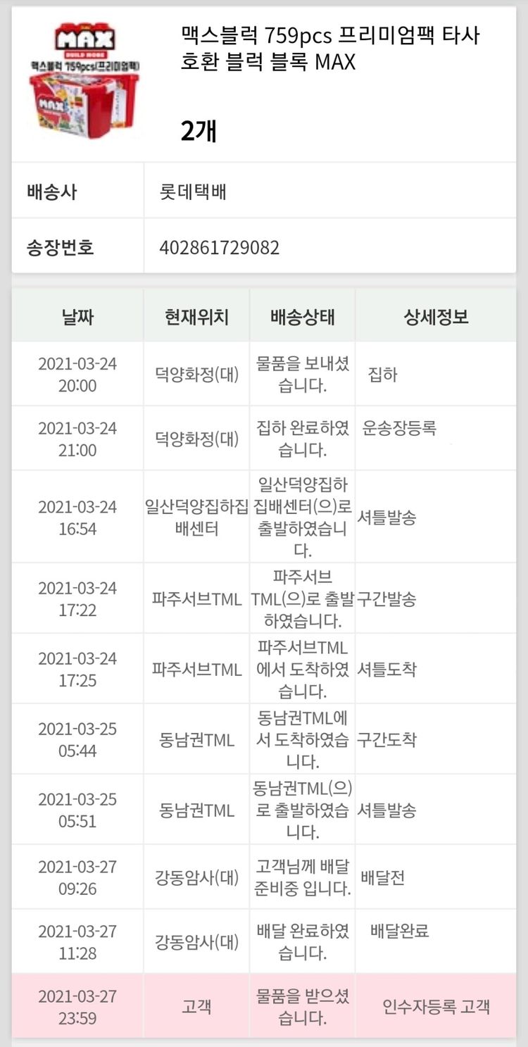 기부자님이 사용한 기부포인트 43,500원, 가격상승분 672원, 결제 수수료 12,799원, 기타 사업비는 행복나눔재단이 부담했습니다. (기부후기 발송시점에 최종 업데이트 됩니다.) 실제 쇼핑몰에서 확인되는 배송현황을 캡처한 내용입니다. 실시간 자료와는 차이가 있을 수 있습니다.