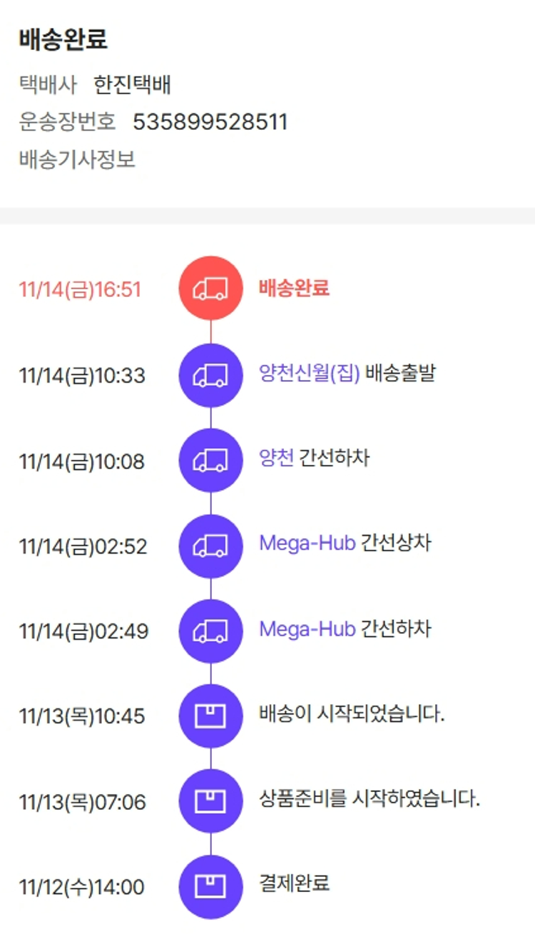 기부자님이 사용한 기부포인트 900원, 가격상승분 5,879원, 100원 미만 지원금 61원, 결제 수수료 11,840원, 기타 사업비는 행복나눔재단이 부담했습니다. (기부후기 발송시점에 최종 업데이트 됩니다.) 실제 쇼핑몰에서 확인되는 배송현황을 캡처한 내용입니다. 실시간 자료와는 차이가 있을 수 있습니다.