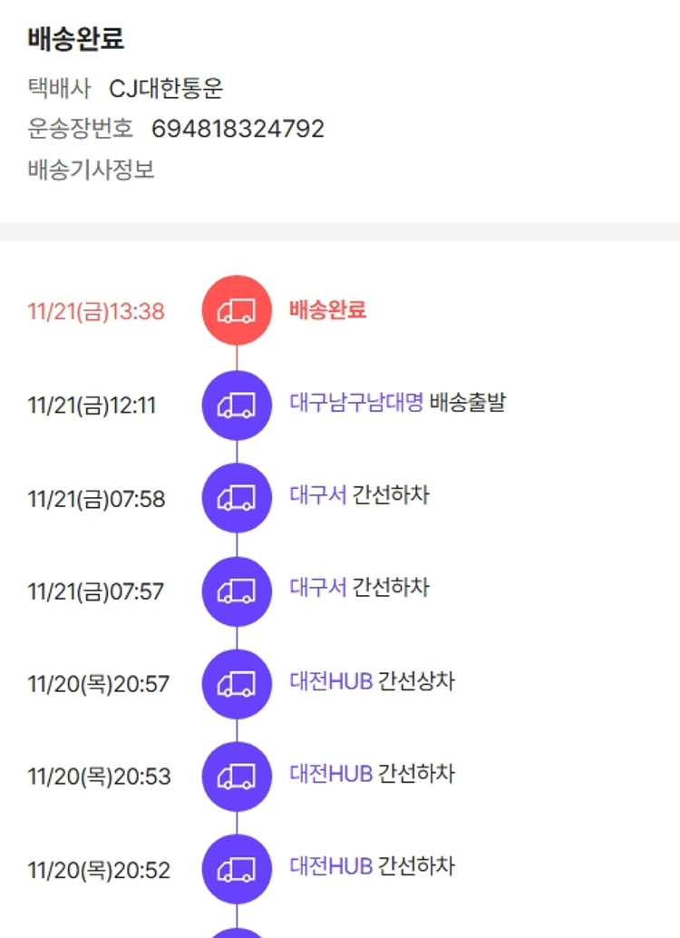 가격상승분 2,638원, 100원 미만 지원금 72원, 기타 사업비는 행복나눔재단이 부담했습니다. (기부후기 발송시점에 최종 업데이트 됩니다.) 실제 쇼핑몰에서 확인되는 배송현황을 캡처한 내용입니다. 실시간 자료와는 차이가 있을 수 있습니다.