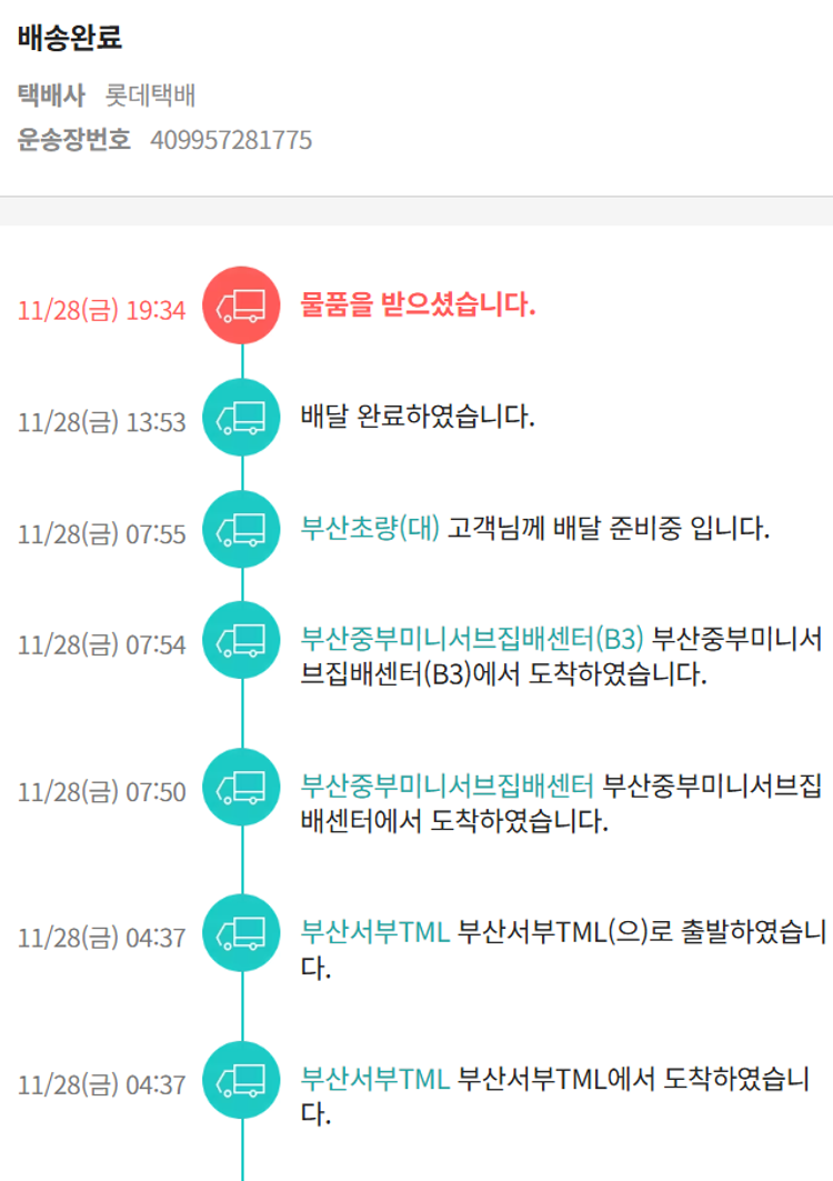 기부자님이 사용한 기부포인트 24,100원, 물품배송비 3,000원, 가격상승분 6,900원, 결제 수수료 10,917원, 기타 사업비는 행복나눔재단이 부담했습니다. (기부후기 발송시점에 최종 업데이트 됩니다.) 실제 쇼핑몰에서 확인되는 배송현황을 캡처한 내용입니다. 실시간 자료와는 차이가 있을 수 있습니다.