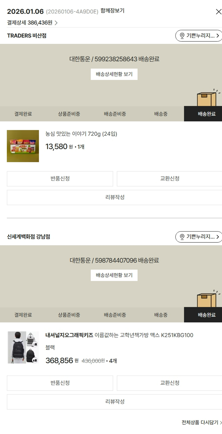 기부자님이 사용한 기부포인트 34,000원, 물품배송비 4,000원, 가격상승분 5,236원, 결제 수수료 7,700원, 기타 사업비는 행복나눔재단이 부담했습니다. (기부후기 발송시점에 최종 업데이트 됩니다.) 실제 쇼핑몰에서 확인되는 배송현황을 캡처한 내용입니다. 실시간 자료와는 차이가 있을 수 있습니다.