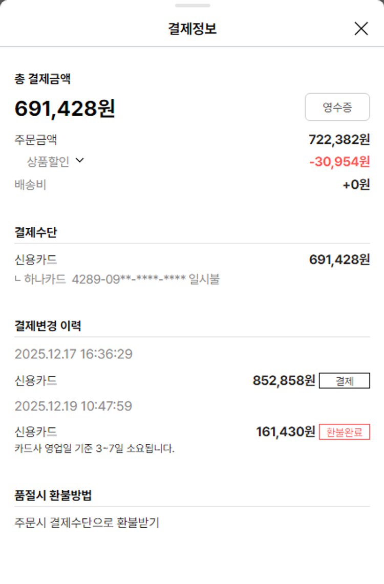 물품배송비 10,000원, 가격상승분 8,413원, 100원 미만 지원금 25원, 기타 사업비는 행복나눔재단이 부담했습니다. (기부후기 발송시점에 최종 업데이트 됩니다.) 상품 주문 건 중 품절 발생하여 2025-12-23 재주문하였습니다. 실제 쇼핑몰에서 확인되는 배송현황을 캡처한 내용입니다. 실시간 자료와는 차이가 있을 수 있습니다.