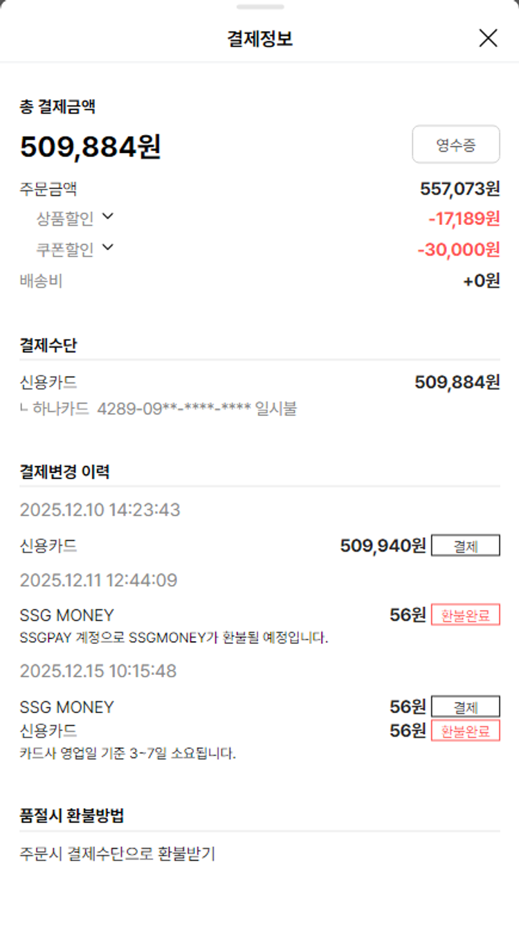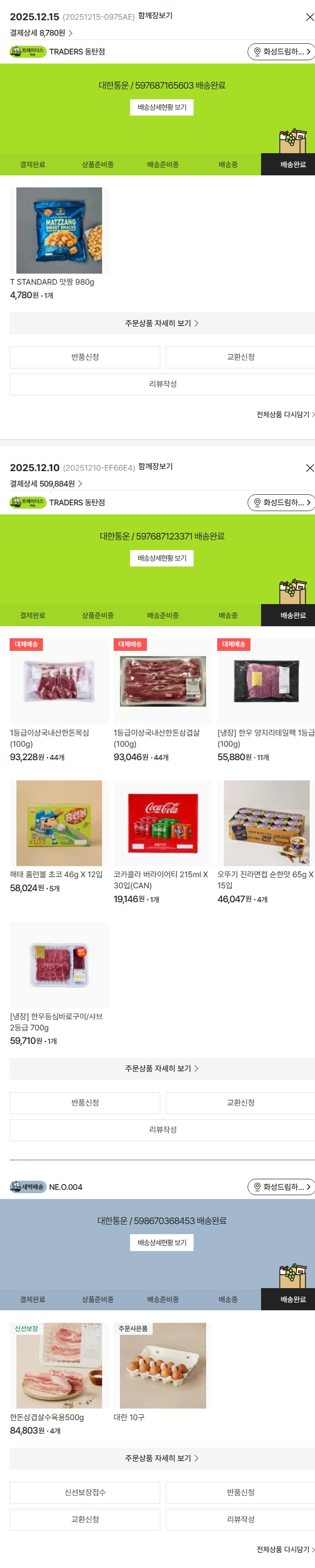 물품배송비 4,000원, 가격상승분 14,594원, 100원 미만 지원금 70원, 결제 수수료 15,400원, 기타 사업비는 행복나눔재단이 부담했습니다. (기부후기 발송시점에 최종 업데이트 됩니다.) 2025-12-15 물품 중량 차액 환불로 추가 주문하였습니다. 실제 쇼핑몰에서 확인되는 배송현황을 캡처한 내용입니다. 실시간 자료와는 차이가 있을 수 있습니다.
