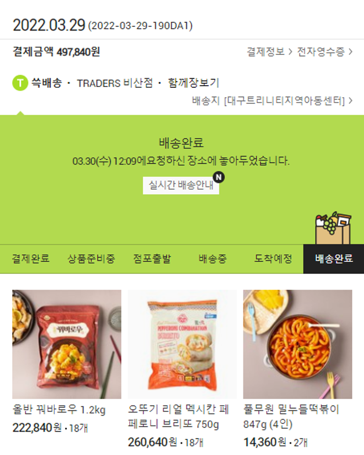 기부자님이 사용한 기부포인트 21,500원, 100원 미만 지원금 40원, 결제 수수료 11,694원, 기타 사업비는 행복나눔재단이 부담했습니다. (기부후기 발송시점에 최종 업데이트 됩니다.) 실제 쇼핑몰에서 확인되는 배송현황을 캡처한 내용입니다. 실시간 자료와는 차이가 있을 수 있습니다.