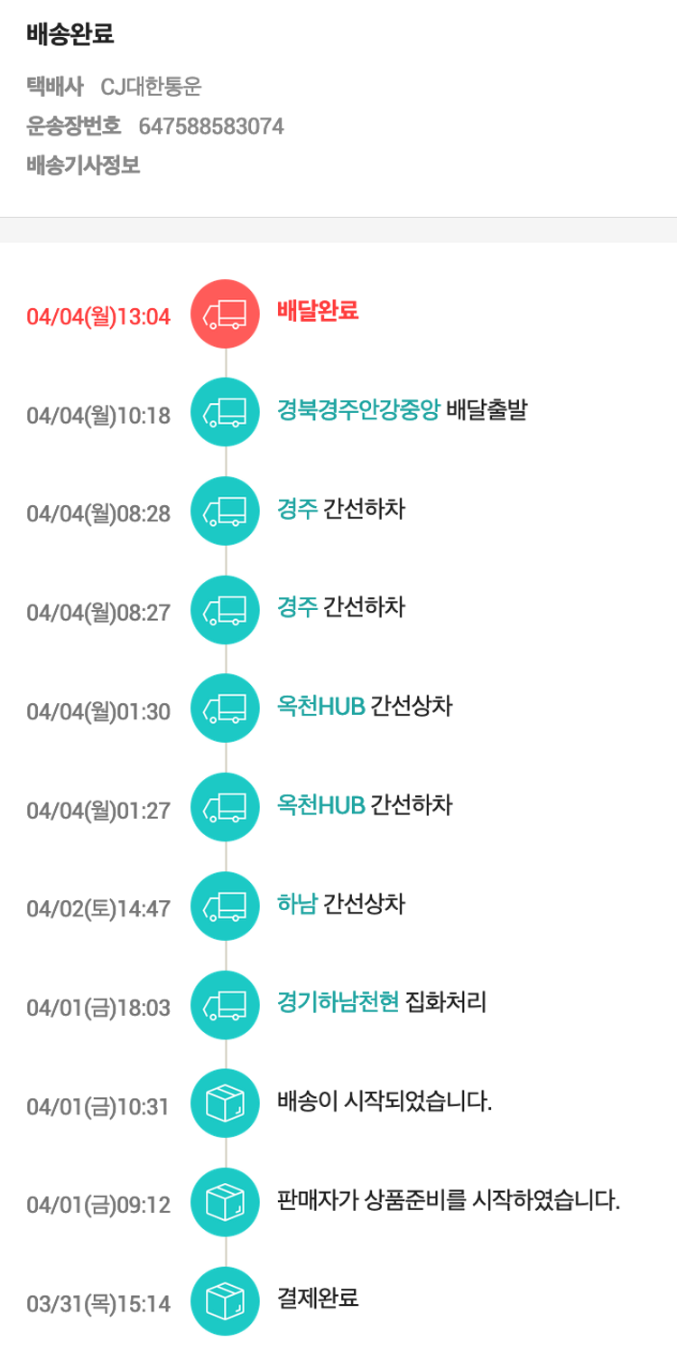 기부자님이 사용한 기부포인트 65,700원, 100원 미만 지원금 90원, 결제 수수료 9,764원, 기타 사업비는 행복나눔재단이 부담했습니다. (기부후기 발송시점에 최종 업데이트 됩니다.) 실제 쇼핑몰에서 확인되는 배송현황을 캡처한 내용입니다. 실시간 자료와는 차이가 있을 수 있습니다.