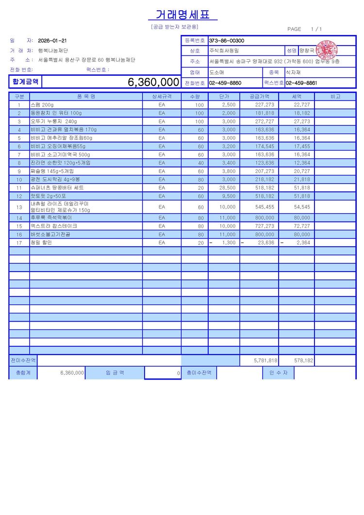 * 배송비 등 추가비용 발생시 행복나눔재단 이 부담합니다.