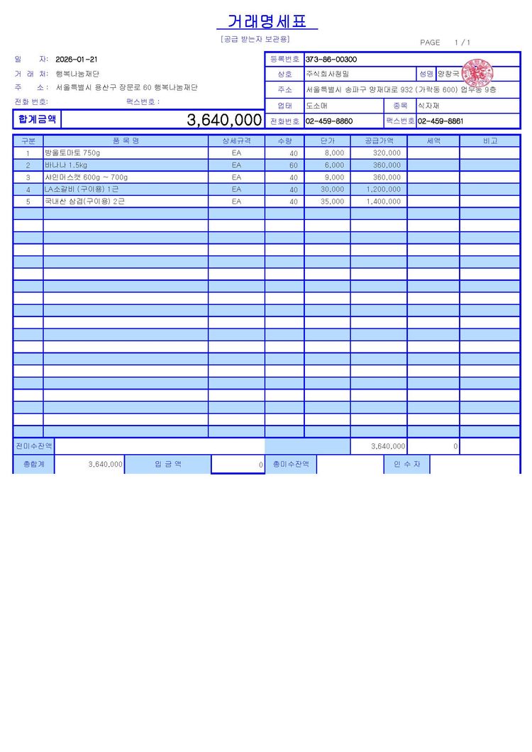 바나나 1.5kg*3박스20개 (개당 18,000원)