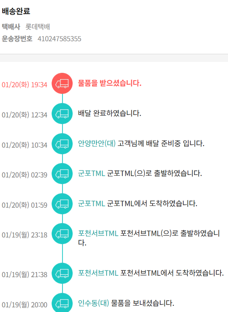 기부자님이 사용한 기부포인트 4,000원, 물품배송비 9,000원, 가격상승분 1,150원, 100원 미만 지원금 88원, 결제 수수료 16,550원, 기타 사업비는 행복나눔재단이 부담했습니다. (기부후기 발송시점에 최종 업데이트 됩니다.) 상품 주문 건 중 품절 발생하여 2026-01-19 재주문하였습니다. 실제 쇼핑몰에서 확인되는 배송현황을 캡처한 내용입니다. 실시간 자료와는 차이가 있을 수 있습니다.
