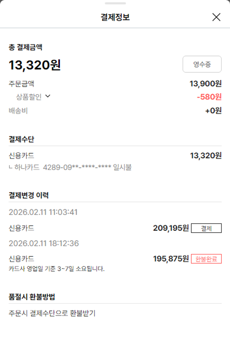 기부자님이 사용한 기부포인트 6,500원, 물품배송비 9,500원, 가격상승분 7,705원, 100원 미만 지원금 76원, 결제 수수료 14,833원, 기타 사업비는 행복나눔재단이 부담했습니다. (기부후기 발송시점에 최종 업데이트 됩니다.) 상품 주문 건 중 품절 발생하여 2026-02-12 재주문하였습니다. 실제 쇼핑몰에서 확인되는 배송현황을 캡처한 내용입니다. 실시간 자료와는 차이가 있을 수 있습니다.