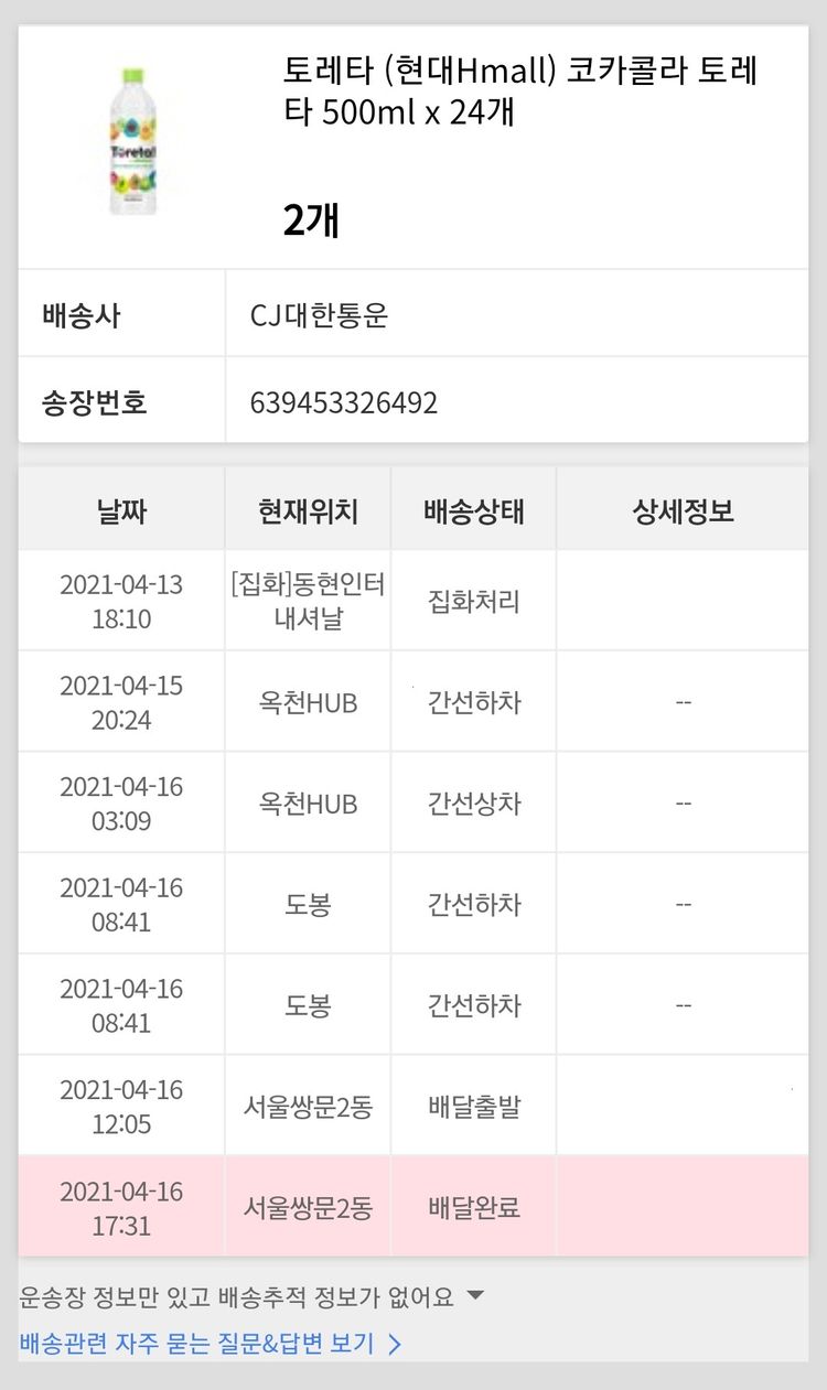 (현대Hmall) 코카콜라 토레타 500ml x 24개2개 (개당 18,030원)
