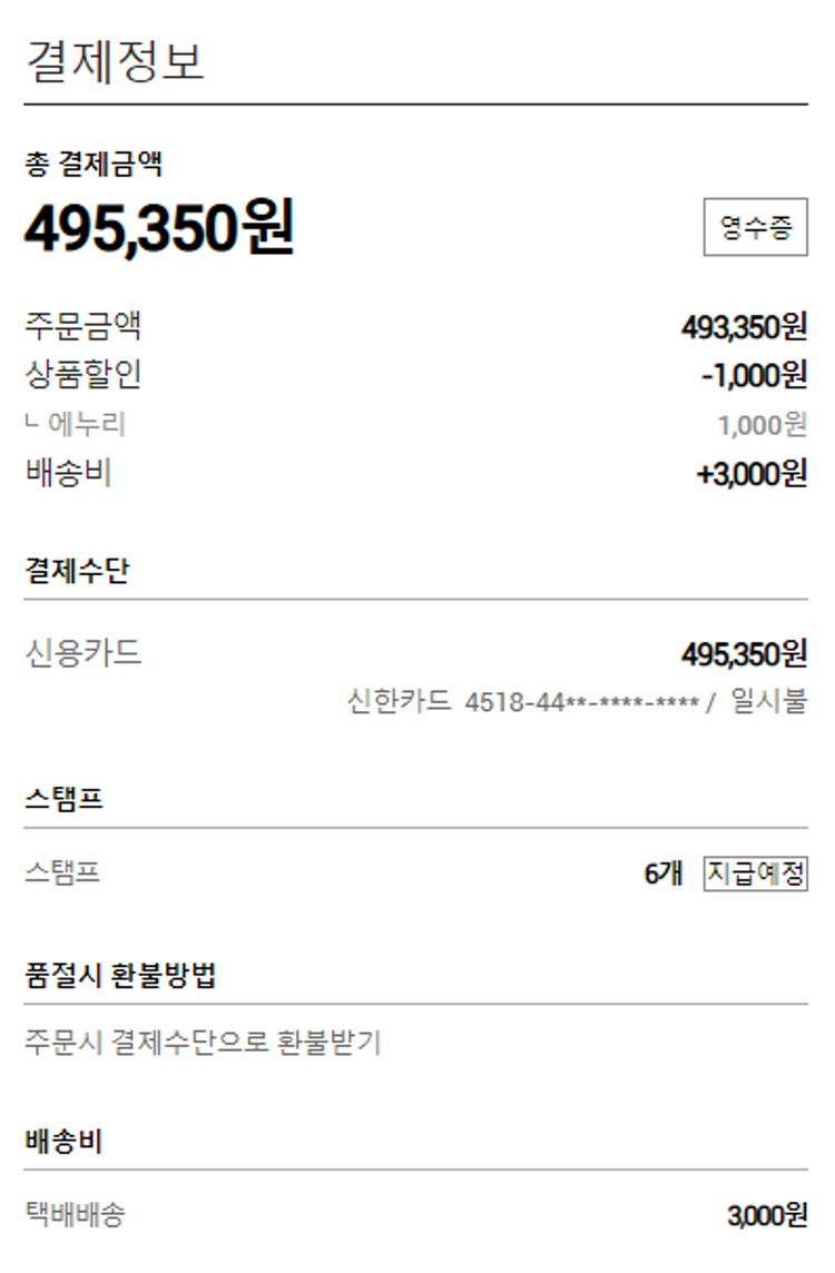 물품배송비 3,000원, 100원 미만 지원금 50원, 결제 수수료 13,121원, 기타 사업비는 행복나눔재단이 부담했습니다. (기부후기 발송시점에 최종 업데이트 됩니다.) 실제 쇼핑몰에서 확인되는 배송현황을 캡처한 내용입니다. 실시간 자료와는 차이가 있을 수 있습니다.