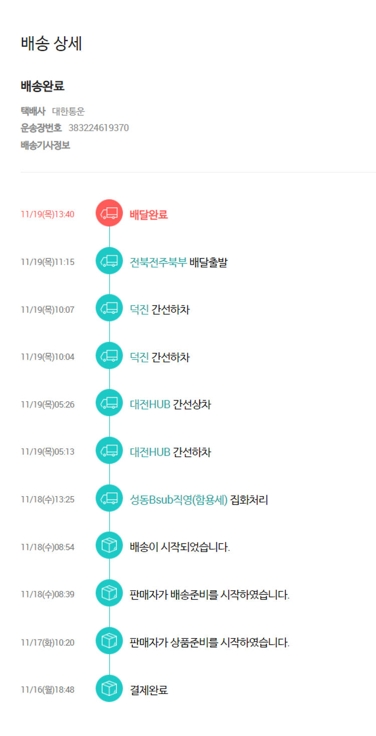 기부자님이 사용한 기부포인트 491,249원, 기타 사업비는 행복나눔재단이 부담했습니다. (기부후기 발송시점에 최종 업데이트 됩니다.) 실제 쇼핑몰에서 확인되는 배송현황을 캡처한 내용입니다. 실시간 자료와는 차이가 있을 수 있습니다.