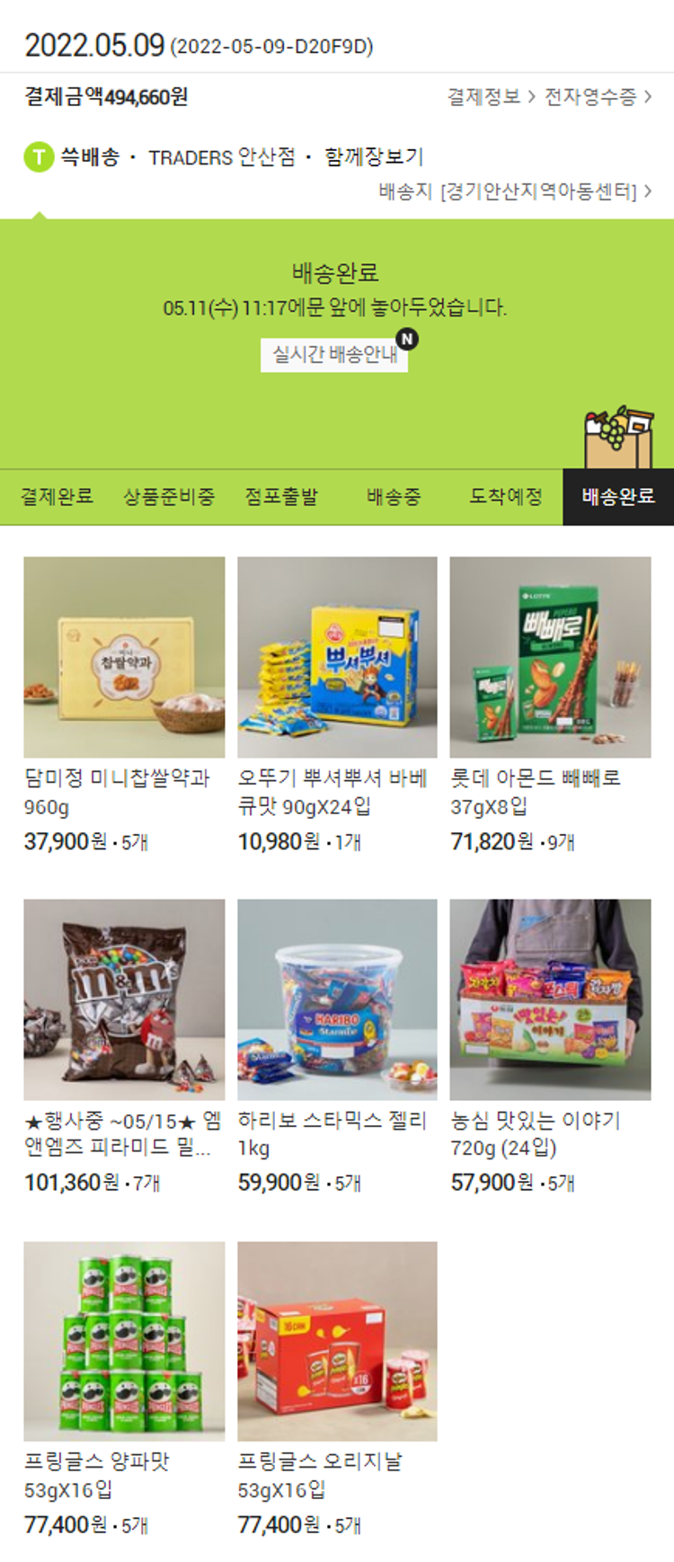 기부자님이 사용한 기부포인트 62,100원, 100원 미만 지원금 60원, 결제 수수료 11,149원, 기타 사업비는 행복나눔재단이 부담했습니다. (기부후기 발송시점에 최종 업데이트 됩니다.) 실제 쇼핑몰에서 확인되는 배송현황을 캡처한 내용입니다. 실시간 자료와는 차이가 있을 수 있습니다.
