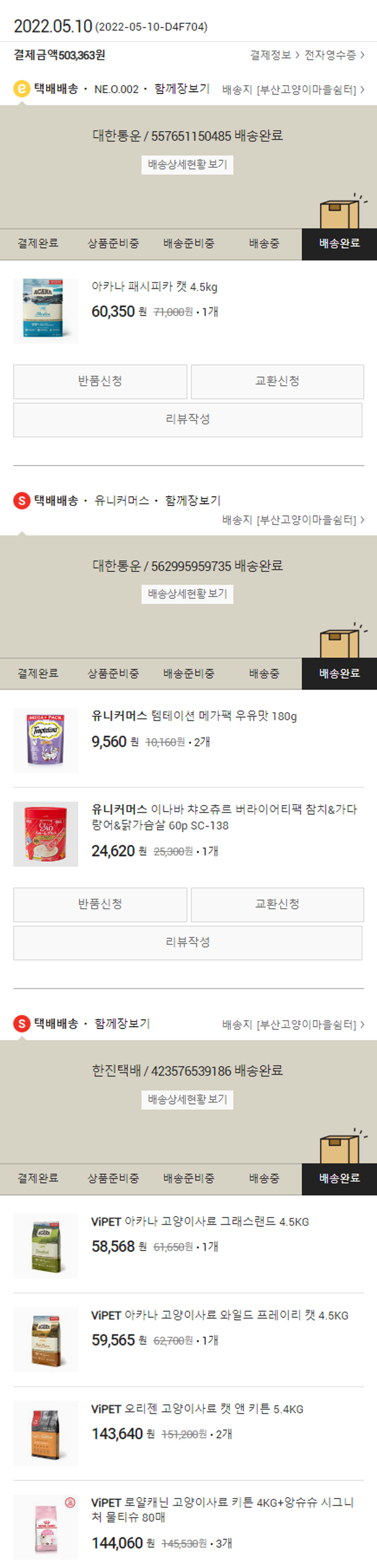 기부자님이 사용한 기부포인트 36,100원, 물품배송비 3,000원, 가격상승분 1,963원, 결제 수수료 12,264원, 기타 사업비는 행복나눔재단이 부담했습니다. (기부후기 발송시점에 최종 업데이트 됩니다.) 실제 쇼핑몰에서 확인되는 배송현황을 캡처한 내용입니다. 실시간 자료와는 차이가 있을 수 있습니다.