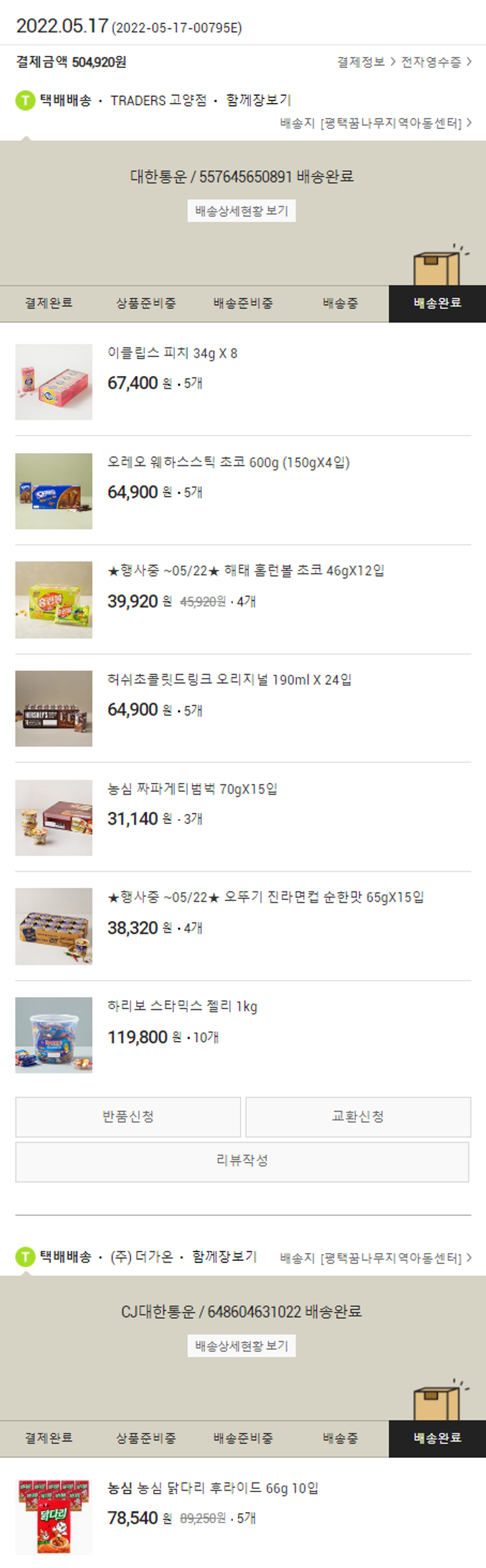 가격상승분 6,980원, 100원 미만 지원금 40원, 기타 사업비는 행복나눔재단이 부담했습니다. (기부후기 발송시점에 최종 업데이트 됩니다.) 실제 쇼핑몰에서 확인되는 배송현황을 캡처한 내용입니다. 실시간 자료와는 차이가 있을 수 있습니다.